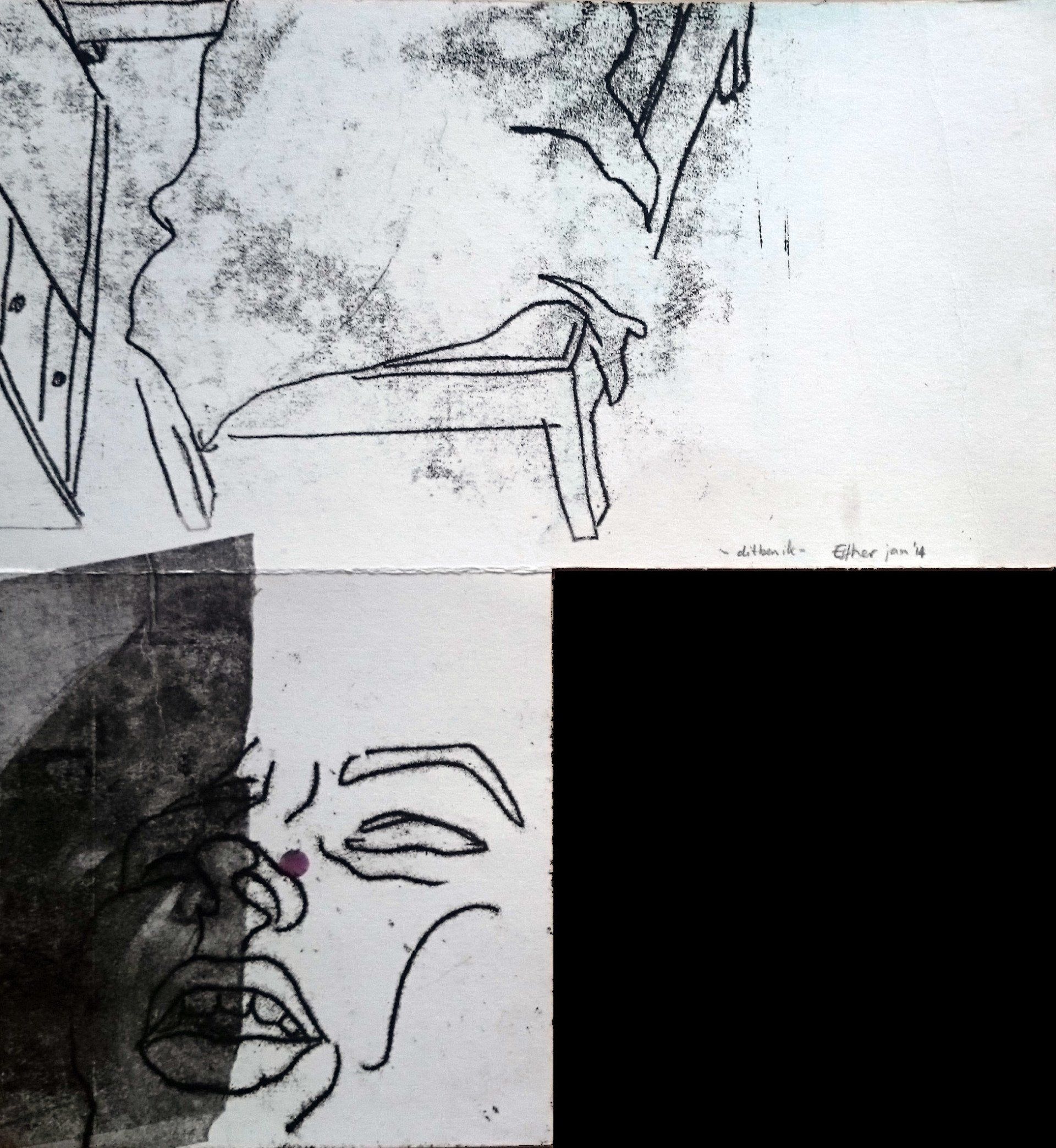 2022 herinnering in zwart en wit, 50 x40, plaatlitho in irisdruk uniek druk