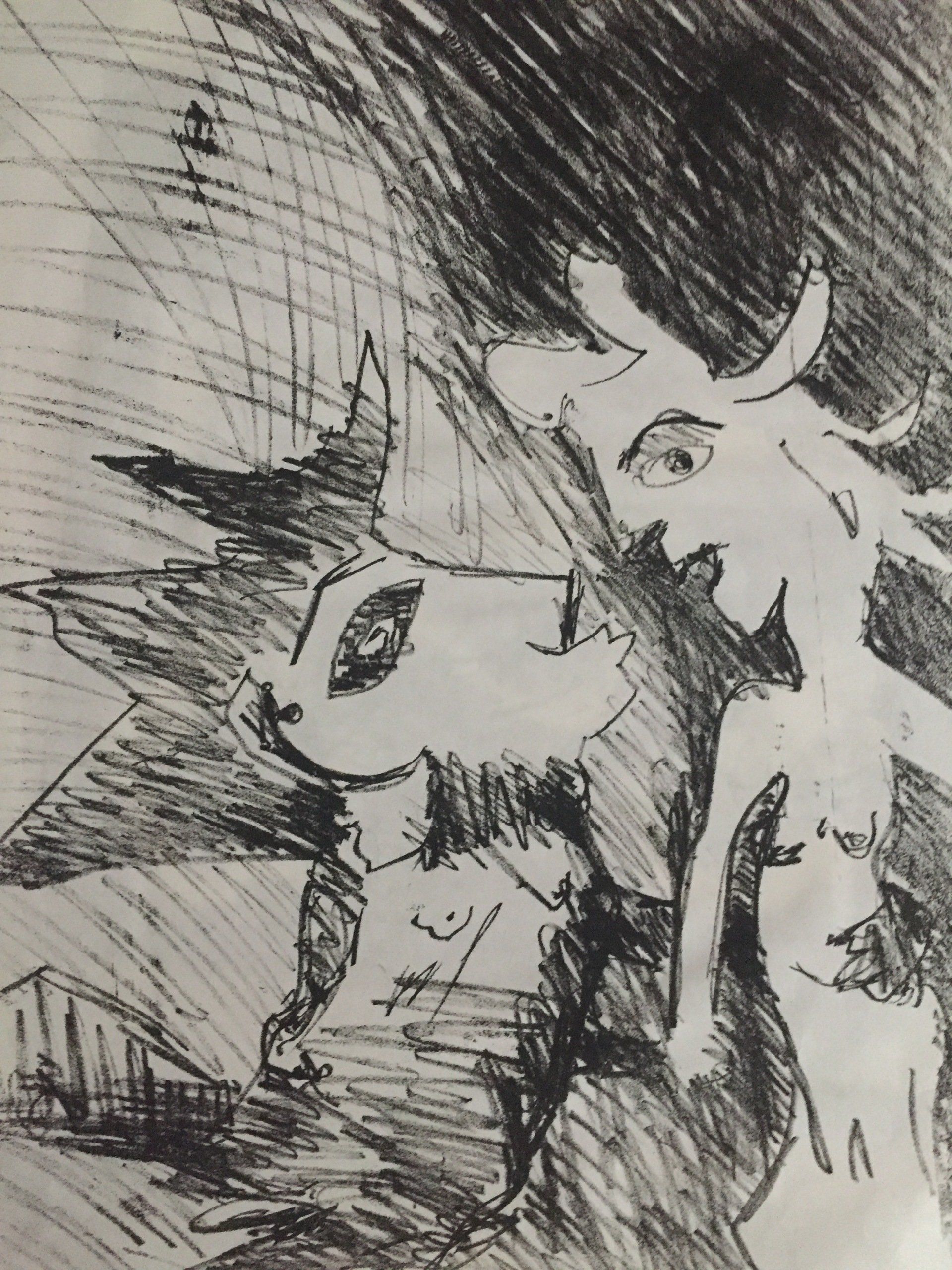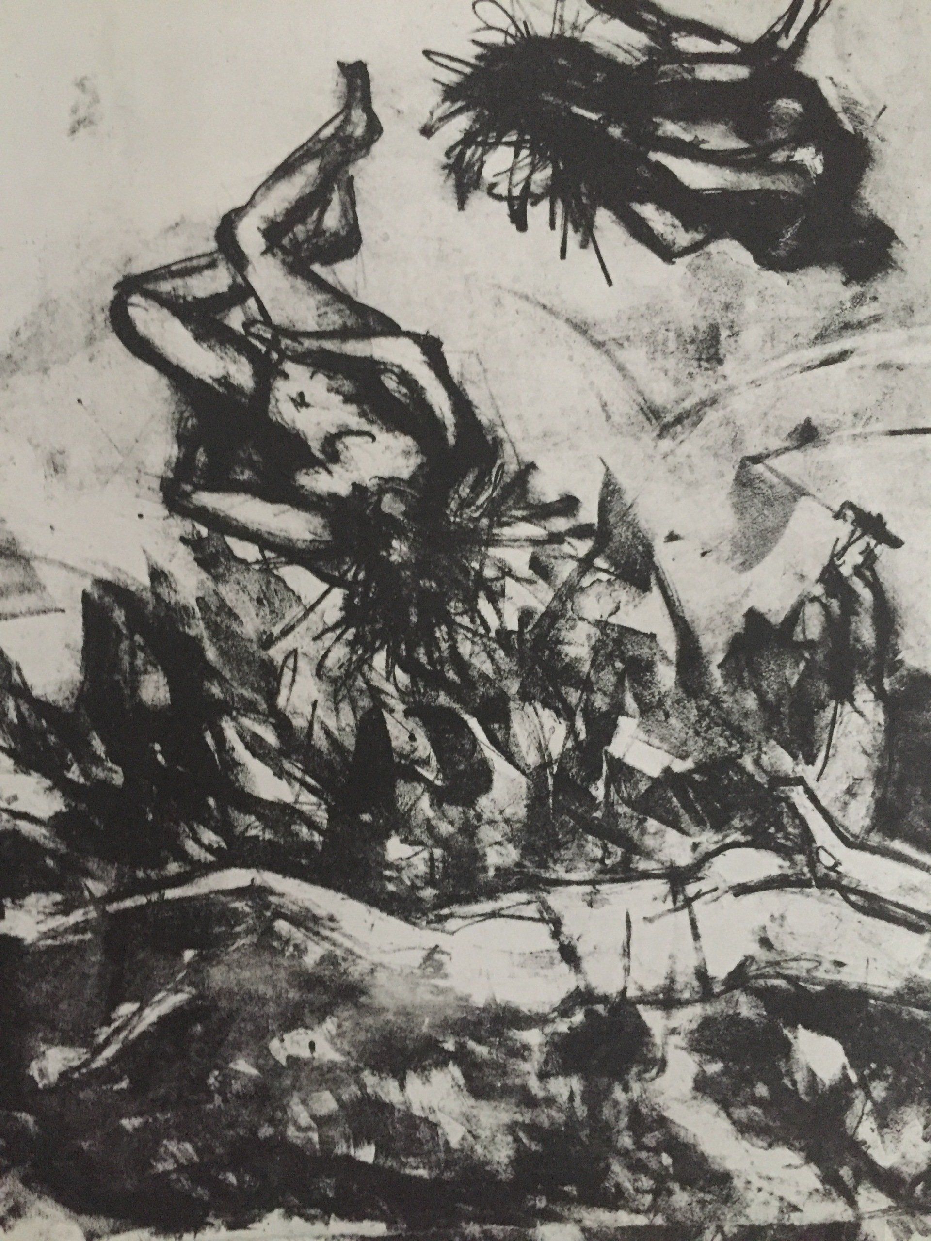 2022 plaatlitho slachtveld (+ spookbeeld) 23x30 uniek exemplaar